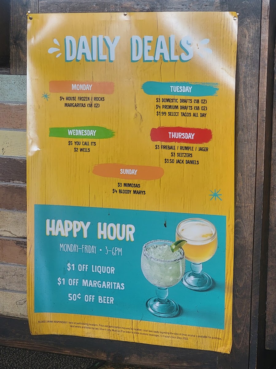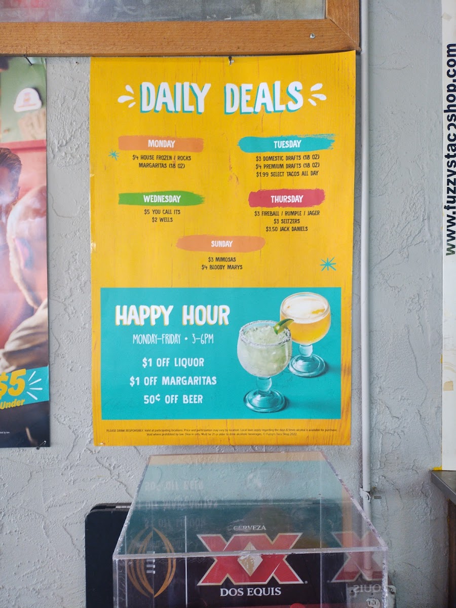 The menu boasts a variety of Baja Tacos that allow for customization, with options like Shredded Chicken and Shredded Brisket, all artfully topped with garlic sauce, fresh veggies, and cheese. Happy hour is particularly enticing, offering two tacos for $5 and refreshing drinks like margaritas. With friendly service and a family-friendly environment, Fuzzy's Taco Shop is a must-visit destination for taco lovers!